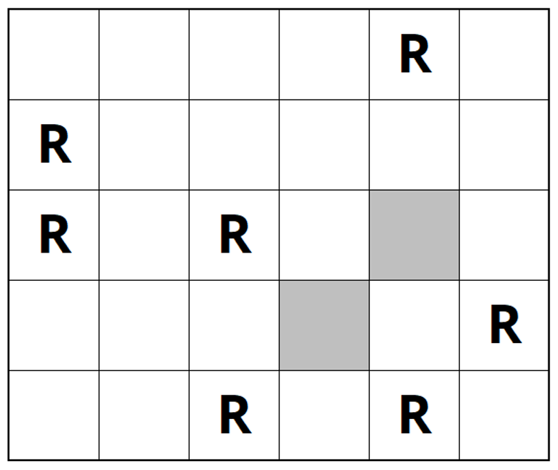 Magyarázat: a 3. sor 5. mezőjéhez és a 4. sor 4. mezőjéhez négy robot is elérhet 2 időegység alatt, míg több már nem.