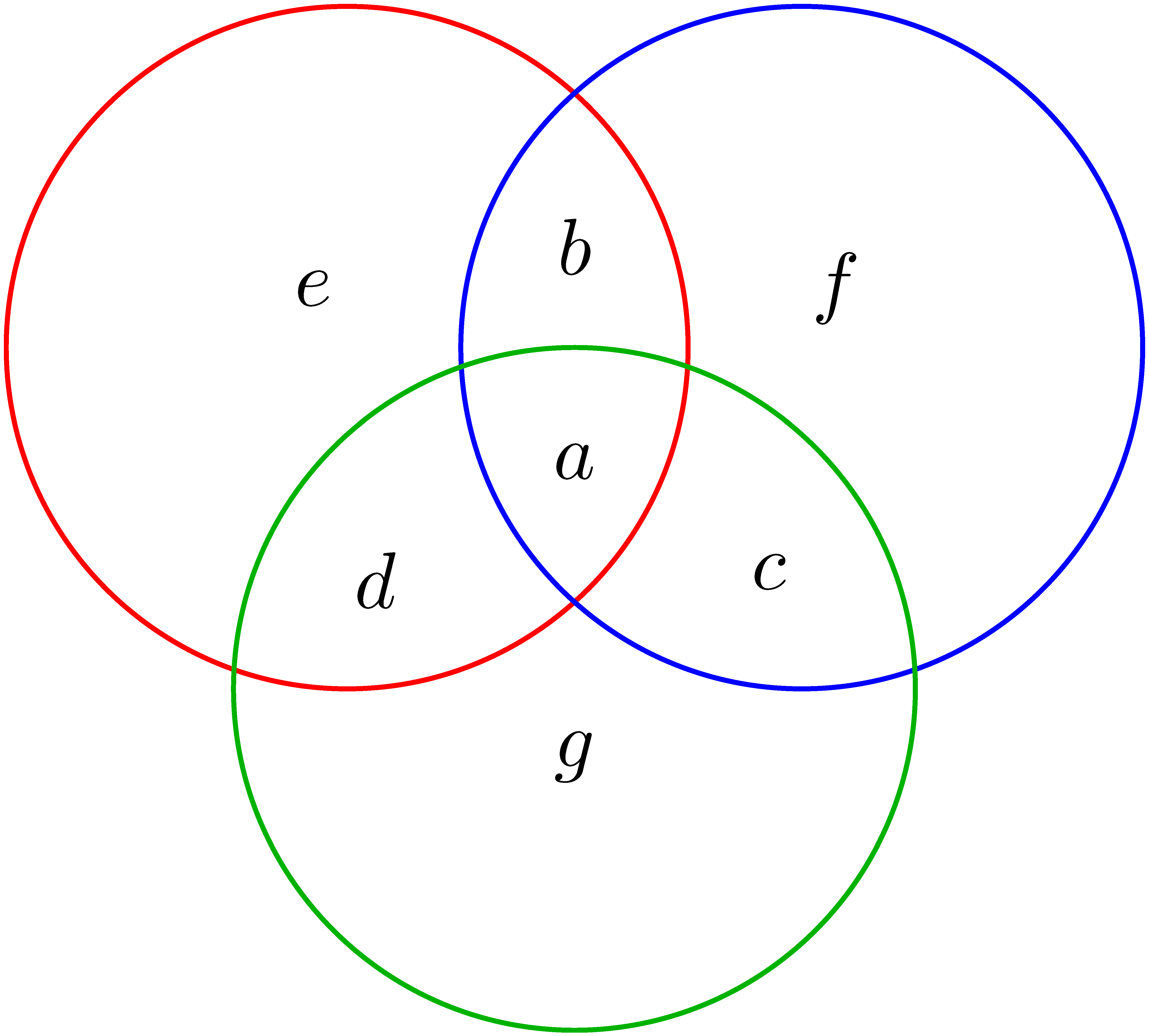 K/C. 872. Fill in the parts denoted by \(\displaystyle a\), \(\displaystyle b\), \(\displaystyle \ldots\), \(\displaystyle g\) of the diagram with numbers 1, 2, 3, 4, 5, 6 and 7 such that the numbers in the three circles have the same sum, and \(\displaystyle a\) is perfect square. Find all solutions.