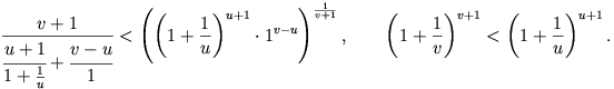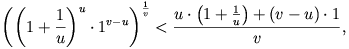 \frac{u\cdot\left(1+\frac{1}{u}\right)+(v-u)\cdot1}{v},\) \(\displaystyle \left(1+\frac{1}{u}\right)^{u}<