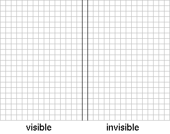 In order to understand what actually happens at the sides of the rectangle, let us first consider a slightly simpler case. Imagine that the world now is only half of the plane bordered by a vertical line. As we have seen, if we change the rules of division of cells along the border-line we will not be able to trace down the consequences. Therefore, we will pretend, instead, that the world is still the whole plane but only half of it is visible to us. Suppose that the cells along the border-line of the visible world divide into four just like any other cells, but one of their descendants (namely the one that would live beyond the border-line) dies immediately for some unknown reason. The reason must be sought in the invisible part of the world. Maybe some cells live there too which we cannot see, but the effects of which we can observe.