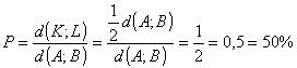 58. Egy intervallum belsejében véletlenszerűen kiválasztok egy P pontot. Mennyi a valószínűsége annak, hogy a P pont közelebb van a felezőponthoz, mint bármelyik végponthoz?