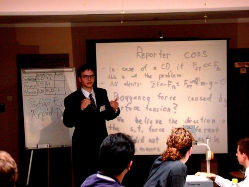 Az együttes munka nehéz ugyan, de érdekes, vonzó, ezért nem véletlen, hogy Drozdy Árpád immáron harmadszor, valamint Soós Péter és Zsarnóczay Ádám már másodszor nevezett a versenyre. A csapattagokat válogatóversenyen választottuk ki, amelyen a 12 pályázó mindegyike angolul ismertette az általa választott probléma megoldását.