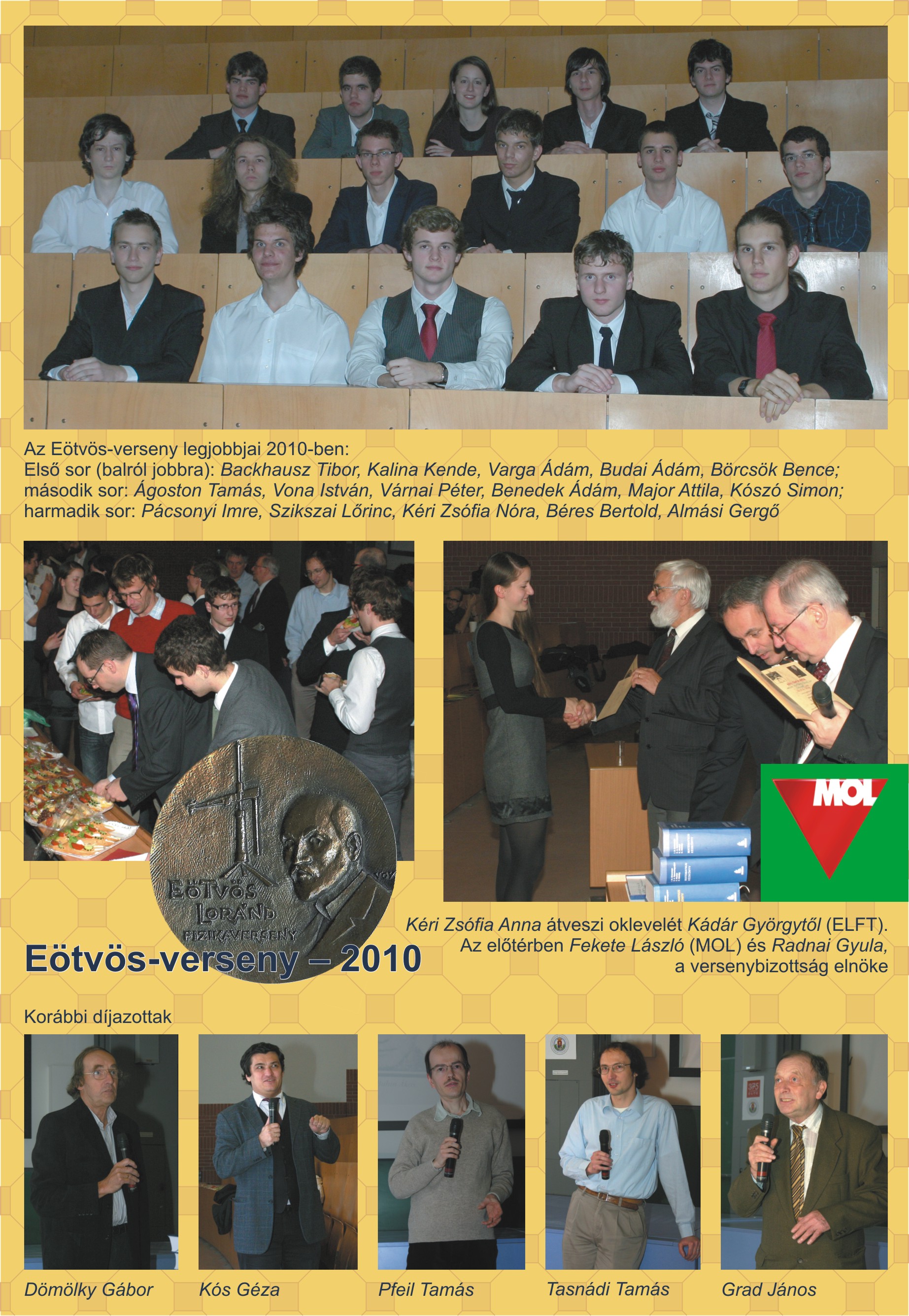 2010. október 15-én délután 3 órai kezdettel rendezte meg az Eötvös Loránd Fizikai Társulat a háború utáni 62. Eötvös-versenyét. Budapesten 30, vidéken 52 dolgozatot adtak be a versenyzők, akik között 1-1 román, szlovák, illetve ukrán állampolgár is volt. Utóbbiak az ELTE, illetve a BME elsőéves hallgatóiként indultak a versenyen.
