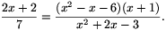 \(\displaystyle \frac{2x+2}{7}=\frac{(x^2-x-6)(x+1)}{x^2+2x-3}. \)