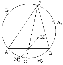 AB, valamint C1 az M pont két tükörképe közé esik. Így tAMB=