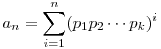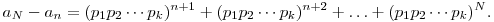 Legyen (n=1,2,...). A definíció szerint an+1-an=(p1p2...pk)n+1