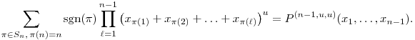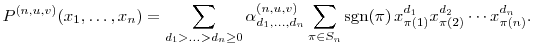 -nel x1d1...xndn együtthatóját a P(n,u,v) polinomban. Mivel a polinom alternáló,