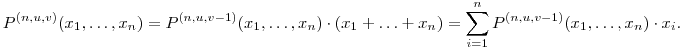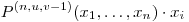 Az n=1 esetben P(1,u,v)(x1)=x1v, és az egyetlen együttható