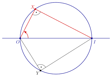 ahol \(\displaystyle (I,O,X,Y)\) a négy pontnak a \(\displaystyle k\) körön vett kettősviszonya.