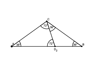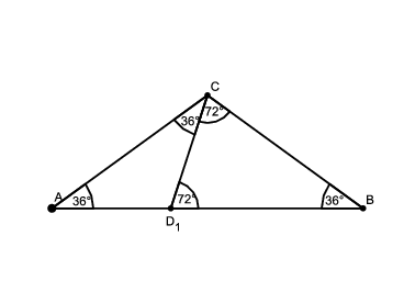 1.) Ia. és Ib., vagyis \(\displaystyle \gamma=3\alpha\) és \(\displaystyle \gamma=3\beta\), ekkor \(\displaystyle \alpha=\beta\), az \(\displaystyle ABC\) háromszög szögeinek összege: \(\displaystyle 180^{\circ}=\alpha+\alpha+3\alpha\), amiből \(\displaystyle \alpha=\beta=36^{\circ}\) és \(\displaystyle \gamma=108^{\circ}\).