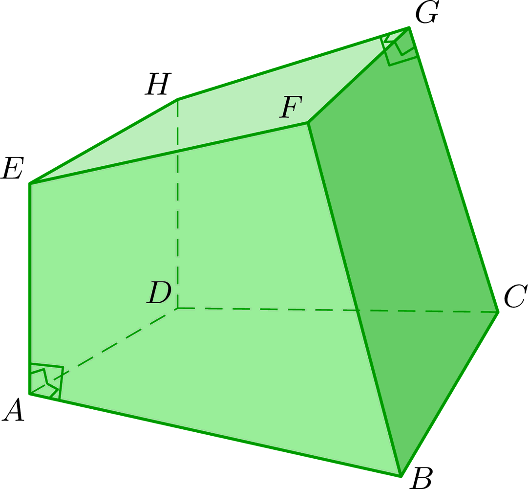 B. 5453. Egy konvex polidéder lapjai az \(\displaystyle ABCD\), \(\displaystyle ABFE\), \(\displaystyle BCGF\), \(\displaystyle CDHG\), \(\displaystyle ADHE\) és \(\displaystyle EFGH\) négyszögek az ábra szerint. Az \(\displaystyle A\), illetve a \(\displaystyle G\) csúcsból induló élek páronként merőlegesek egymásra. Igazoljuk, hogy