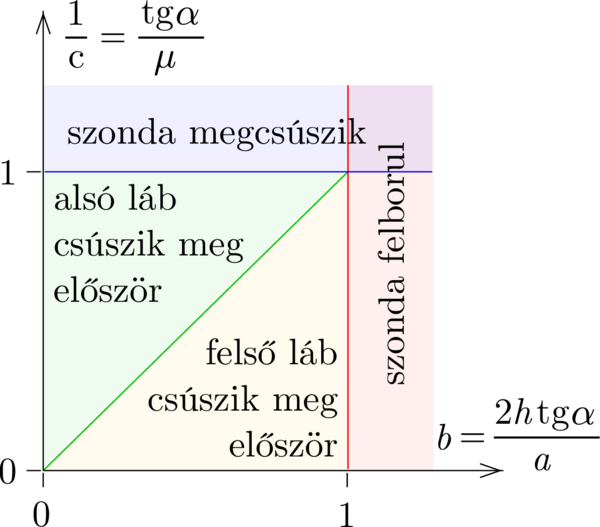 akkor \(\displaystyle S_2\) negatívvá válhat. Ekkor az a láb fog előbb megcsúszni, amelyik határfeltételét előbb metszi a piros egyenes. Ha