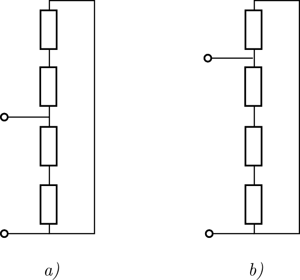 G. 900. Megválasztható-e az ábrán látható ohmos ellenállások (nullától különböző) nagysága úgy, hogy az eredő ellenállás az a) és b) esetekben egyenlő legyen?