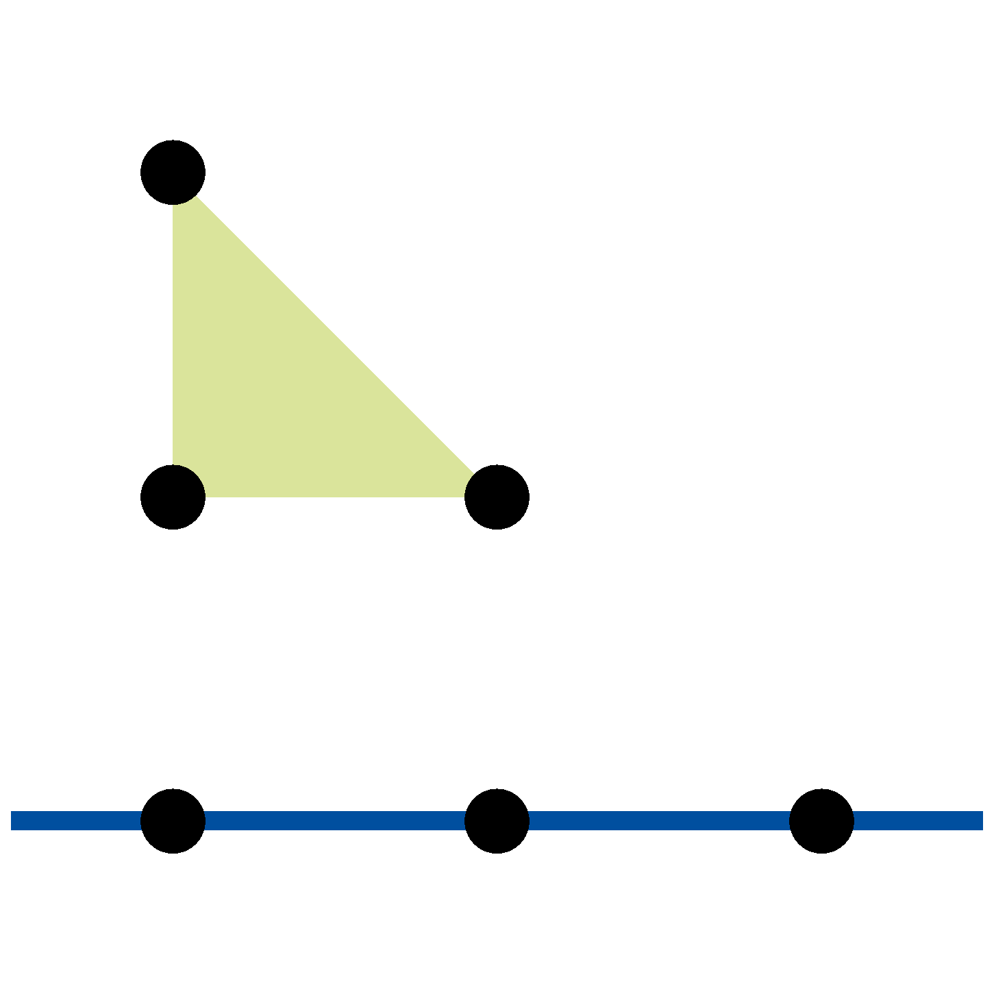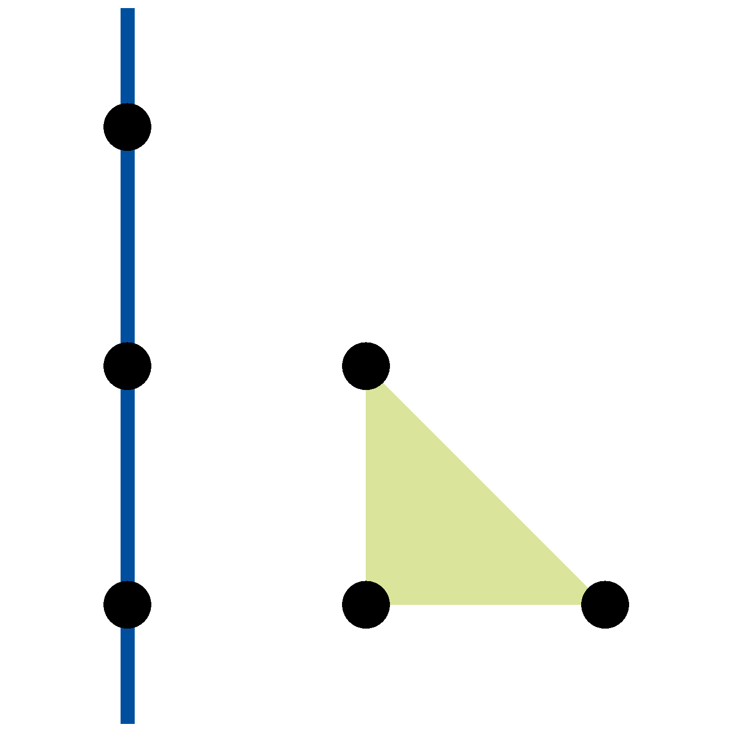 Bizonyítás. A háromszögnek összesen \(\displaystyle 3n-3\) határpontja van. Mivel \(\displaystyle n>3\) miatt \(\displaystyle 3n-3>2n\), a skatulyaelv miatt valamelyik egyenes legalább három határponton megy át; ez az egyenes viszont csak a háromszög valamelyik oldalegyenese, tehát az egyik határegyenes lehet.