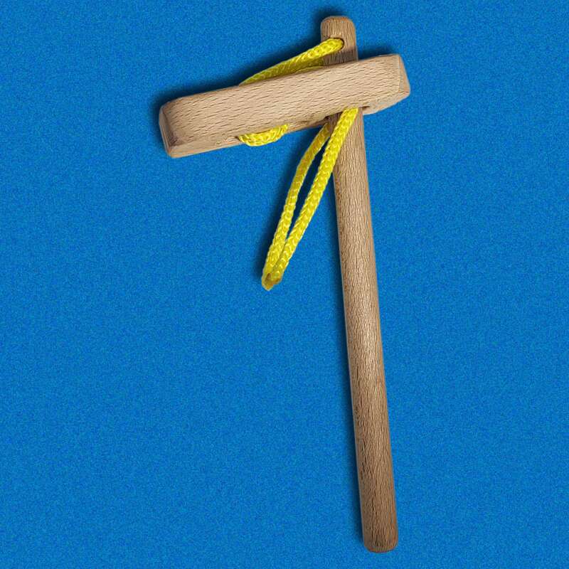 Egy nagyon meghökkentő bújócskát láthatunk az 5. ábrán. Ez egy fatalapzatból és két szál drótból áll – utóbbiakra jobb és bal oldali drótként fogunk hivatkozni a szerint, hogy a fotón a jobb vagy a bal oldalra esik a talapzatba rögzítésük. A célunk a zsinór lefűzése.