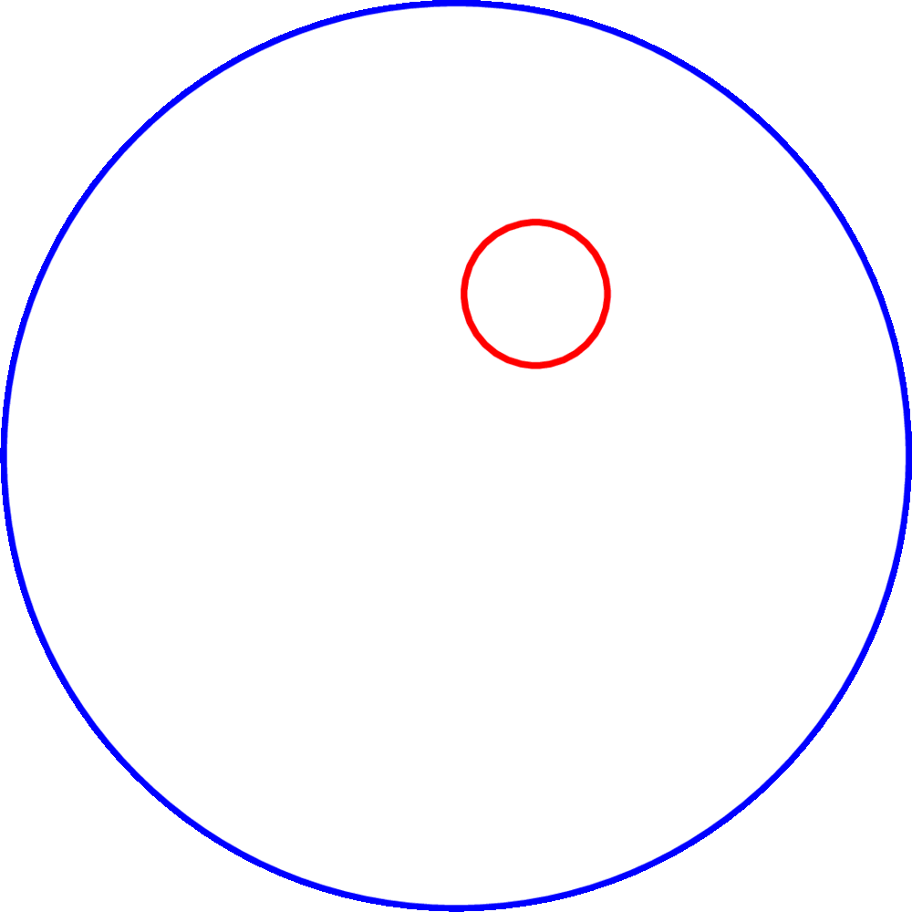 \(\displaystyle T_1=r^2\pi=\left(\frac{k}{2\pi}\right)^2\pi=\frac{k^2}{4\pi}\approx 0{,}0796~\mathrm{km}^2. \)