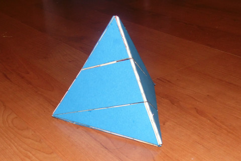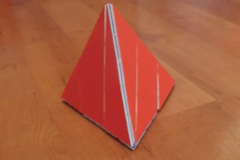 Ha a kétszeres periódus határát rárajzoljuk a tetraéder felszínére, egy zárt, állandó szélességű szalagot kapunk. Ha a szalag elég keskeny, akkor az élek mentén hajtogatva ki is fordíthatjuk, és a kifordított szalagot újra tetraéderfelszínné hajtogathatjuk össze. (Célszerű lehet a szalag szélén füleket is kialakítani.)