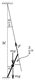 \(\displaystyle M=M_{2}-M_{1}=F\ell\,\frac{3}{2}\alpha-2mg\,\frac{\ell}{2}\alpha=\ell\alpha\left(\frac{3}{2}F-mg\right)=\)