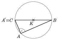 BA'=2R. Ha \(\displaystyle alpha\)=90o, akkor A'