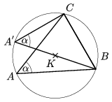 Bizonyítás. Messe a háromszög köré írható körének BK