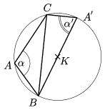 akkor BA'C\(\displaystyle angle\)=\(\displaystyle alpha\) (2/2. ábra), vagy BA'C