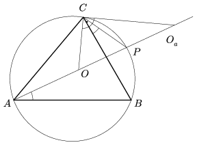 (4. ábra). (Mivel \(\displaystyle CO_aB\angle=\frac{\beta+\gamma}{2}<180^\circ\!-\alpha=180^\circ\!-CAB\angle\),