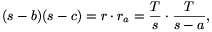 \(\displaystyle \frac{r}{s-b}=\frac{s-c}{r_a},\) azaz