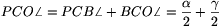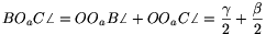 háromszög szögei rendre: \(\displaystyle \frac{\beta+\gamma}{2}\),