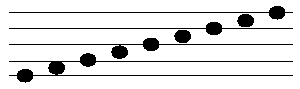 Az első kottafejet 9 helyre, a másodikat is, és a harmadikat is 9 helyre tehetjük.