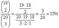 Egy húszfős diákcsoport hétvégi kirándulásra indult a Nyugati pályaudvarról. Induláskor kiderült, hogy Rendetlen Tóbiás és Feledékeny Fáni elfelejtett diákigazolványt hozni, pedig a csoport minden tagjának kedvezményes jegyet váltottak. A kalauz a vonaton a csoportból három diákot szúrópróbaszerűen ellenőriz. Mennyi a valószínűsége, hogy