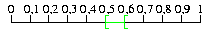 A 0 és 1 közötti számok egy 1 hosszúságú intervallum pontjainak feleltethetők meg, míg a keresett számok egy 0,1