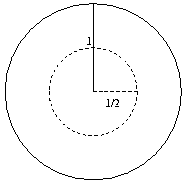 Egy egységsugarú kör belsejében azok a pontok, melyek egyenlő távol vannak a középpontjától és a kerületétől,