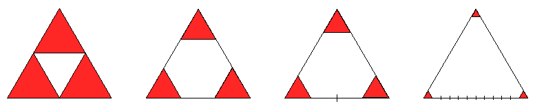 A kis háromszögek hasonlóak az eredeti szabályos háromszöghöz, és a hasonlóság aránya az egyes esetekben:
