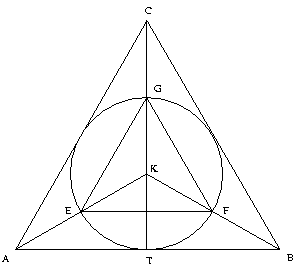 - a kör és a belső háromszög közé;