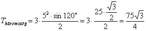 Elegendő egy kis háromszög területét meghatározni, és a kapott eredmény területét kell háromszorozni.