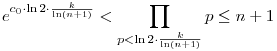 Végül felhasználjuk azt a szintén ismert tényt, hogy tetszőleges x>2 valós számra az x-nél kisebb prímszámok szorzata nagyobb, mint ec0x, ahol c0 pozitív szám.