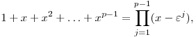 Az 1+x+x2+...+xp-1 polinom gyökei az 1-től különböző komplex p-edik egységgyökök. Legyen ; ekkor