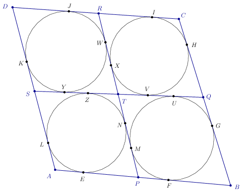 Az ABCD négyszög szemközti oldalainak összege mindkét pár esetén ugyanaz, tehát ABCD érintőnégyszög.