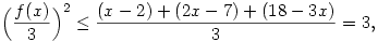 Megoldás: Az f függvény értelmezési tartománya a [7/2,6] intervallum. A számtani és négyzetes közepek között fennálló egyenlőtlenség értelmében minden ilyen x-re