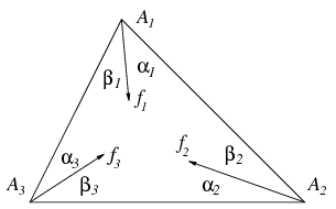 Az A1A2A3 háromszög Ai csúcsából a háromszög belsejében induló fi félegyenes zárjon be a háromszög megfelelő oldalaival