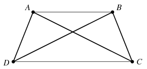 Megoldás. Az \(\displaystyle ABCD\) trapézban \(\displaystyle BAD\sphericalangle+CDA\sphericalangle=180^\circ\), vagyis \(\displaystyle \cos BAD\sphericalangle+\cos CDA\sphericalangle=0\). A koszinusz tétel szerint