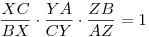 i szögek szinuszai közül és az AZ,ZB,BX,XC,CY,YA szakaszok hossza közül is pontosan kettő negatív lesz.