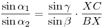 Most írjuk fel a szinusz-tételt az ACX és ABC háromszögekre, innen a
