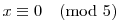 Vizsgáljuk (1)-ben a két oldal maradékát 5-tel osztva. Tetszőleges x egészre, ha , akkor