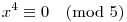 Megjegyzés. Az egyenletben szereplő 4-es kitevőkből sejthetjük meg, hogy az 5-ös maradékokat érdemes vizsgálni: a kis Fermat-tétel szerint , ha x nem osztható 5-tel.