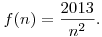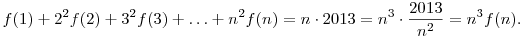 Ebből n szerinti indukcióval láthatjuk, hogy n2f(n) konstans, avagy egy alkalmas c számal. Az f(1)=2013 feltételből kapjuk, hogy c=2013, vagyis