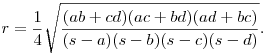 Ismert, hogy ha a egy húrnégyszög oldalai a,b,c,d, félkerülete , a köré írt kör sugara r, akkor