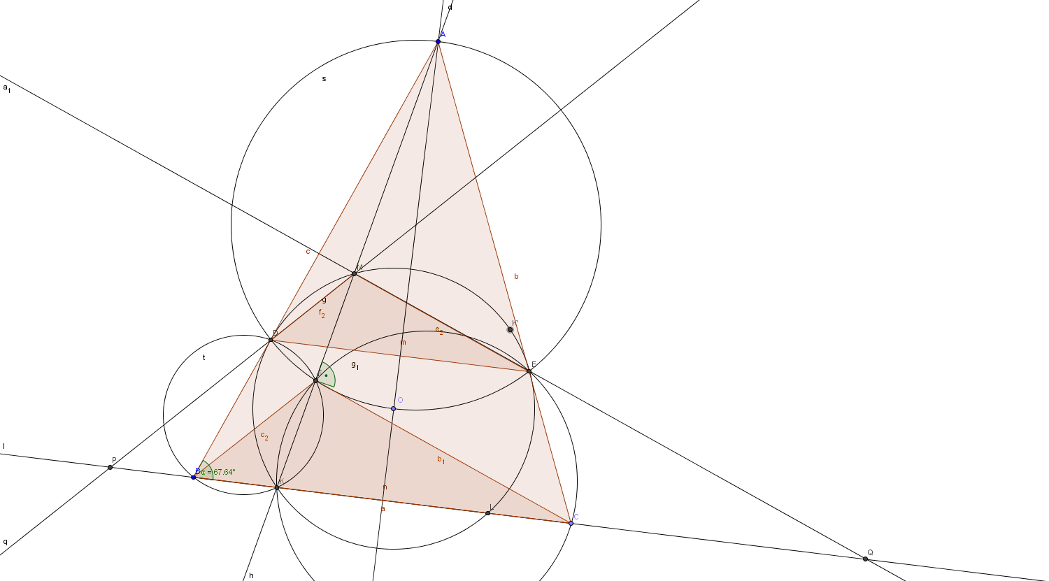 Éppen ezt akartuk látni. Nyilván teljesen analóg módon bizonyítjuk azt, hogy \(\displaystyle DME\angle=DMQ\angle\), szimmetria okokból. Ezzel a bizonyítást befejeztük.