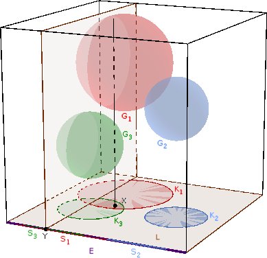 Emiatt biztosan van olyan \(\displaystyle Y\in E\) pont, ami több, mint \(\displaystyle 600\) \(\displaystyle S_i\)-nek belső pontja. Ekkor a \(\displaystyle Y\)-ban \(\displaystyle E\)-re állított merőleges sík metszi az ezekhez tartozó \(\displaystyle G_i\) gömböket.