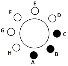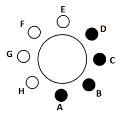 a) Mind a négy ember férfi (1. ábra). Ekkor a következő négy helyen ülő ember mind nő, így a C, D, E, F helyeken ülőket kiválasztva teljesül az állítás.